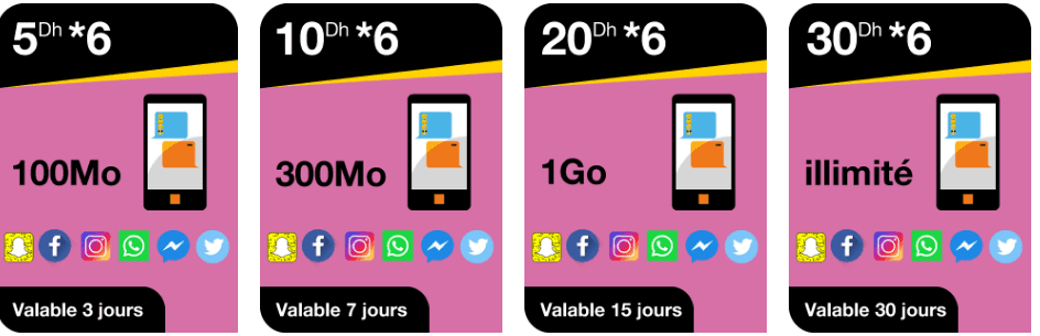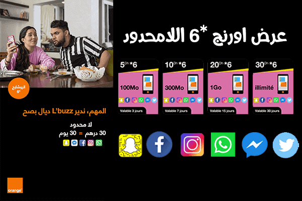 عرض اورنج 6 لامحدود مواقع التواصل الاجتماعي لمدة شهر ب30 درهم