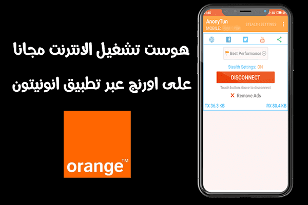 هوست تشغيل الانترنت بالمجان في اورنج بتطبيق Anonytun